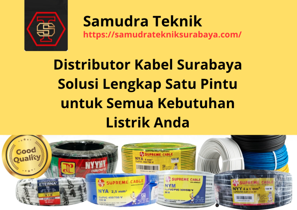 Karena itu, percayakan kebutuhan Anda pada Samudra Teknik Surabaya, distributor kabel Surabaya yang menyediakan solusi lengkap, harga kompetitif, dan pelayanan profesional.